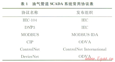 Byres等認為使用私有協(xié)議是更安全的[9]。但是目前出于工程實施難度和成本的考慮,油氣管道SCADA系統(tǒng)中使用的是一些開放的標準協(xié)議,且多是基于以太網和TCP/IP協(xié)議棧的應用層協(xié)議。