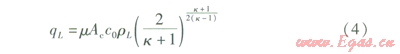 對于高壓天然氣輸送管道,當出現(xiàn)開裂泄漏造成較大量的天然氣泄漏時,破裂口天然氣流動將會較長時間都處于臨界流動狀態(tài),即壓力比b≤bc。