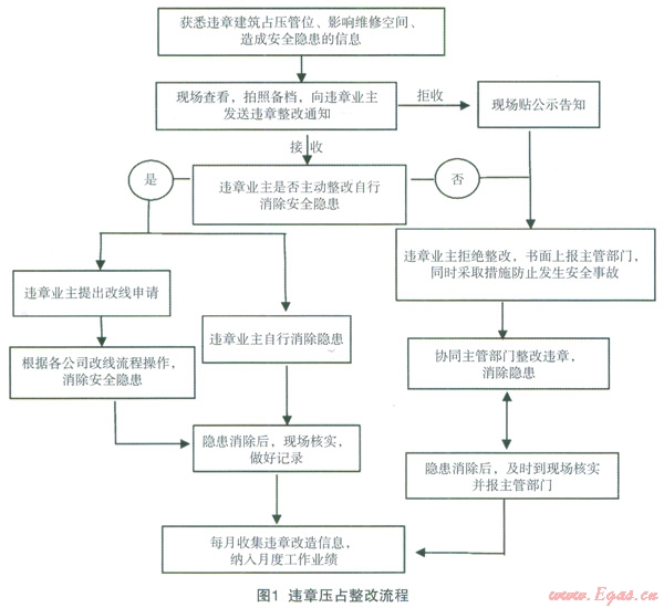 通過上面對華東區域燃氣違章現狀的調查與分析,了解到要整改違章壓占,消除管網的安全隱患,必須從兩個方面入手,一方面要加強老違章整改,一方面要控制新違章的增長。由此,結合著各地燃氣公司的現狀,確立了如下的工作重點: