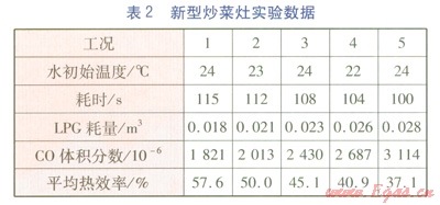 摘 要:介紹新型中餐液化石油氣炒菜灶的結構。采用實驗方法,比較新型與傳統中餐夜化石油氣炒菜灶的熱效率、液化石油氣耗量、煙氣中一氧化碳體積分數。