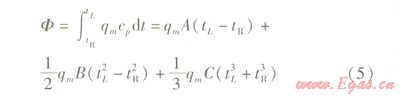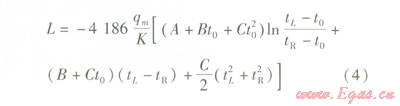 將式(3)等號左側在管長0~L范圍進行積分運算,等號右側在溶液溫度tR~tL范圍進行積分運算,可得到: