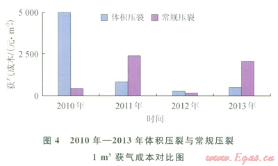 4.1 體積壓裂與常規壓裂每立方米獲氣成本評價