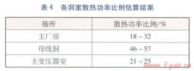 大型地下水電站廠房一般以主廠房、主變壓器室曲大洞室為中心,中間通過母線洞連接,形成龐大、復(fù)雜的地下洞室群。其中,主廠房分為發(fā)電機(jī)層、母線層、水輪機(jī)層、蝸殼層、廊道層等功能層。散熱設(shè)備的各分布場所分別見表2、3.以三峽地區(qū)某地下水電站各場所散熱功率比例進(jìn)行估算。