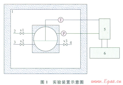 圖1為實驗裝置示意圖,實驗裝置主要部分包括可視化高壓反應釜、恒溫空氣浴、真空系統、溫度傳感器、壓力傳感器、數據采集系統。可視化高壓反應釜為反應系統的核心部分,釜體材料為不銹鋼,兩端帶有玻璃視窗,可觀察水合物的靜態生成情況;恒溫空氣浴由制冷機提供冷量,可控溫度范圍為-20~40℃,穩定運行時控溫精度為±0.1℃;真空系統采用2XZ-0.5型旋片真空泵(浙江黃巖黎明實業有限公司)來實現,可以將反應釜抽真空至0.06Pa;溫度傳感器為Ptl00四線制鉑電阻溫度傳感器(北京賽億凌科技有限公司生產),精度為±0.1℃,置于反應釜內兩相分界面處,用來測量水合反應過程中的溫度;壓力傳感器(上海天沐自動化儀表有限公司生產)量程為0~1MPa,測量壓力精度為0.05%;數據采集系統通過安捷倫數據采集儀Agilent 34970A來實現。