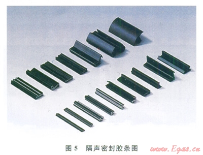 平臺生活樓房間布有400mm×560mm規格的氣阻型鋼質窗,房間原有氣阻型窗玻璃膠條老化開裂,漏聲嚴重,其現場如圖4所示。對于此類狀況,可將房間舷窗用耐候隔聲膠條替換原有老化膠條。密封膠條的選用應符合現場門窗的實際要求,具有阻燃、防火能力,如圖5所示。