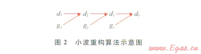 小波藿構算法與小波分解算法的過程相反[11],重構算法如圖2所示。
