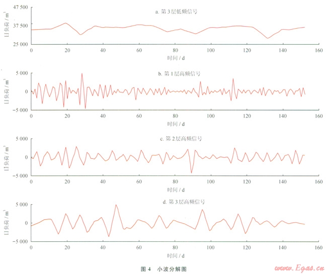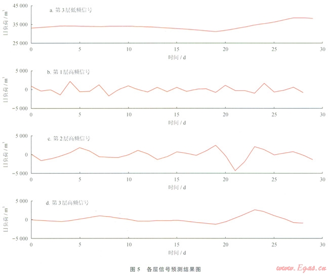 1)采用快速Mallat算法對實際采集的天然氣日負荷時間序列進行小波分解,分解出第3層低頻序列、第1層高頻序列、第2層高頻序列、第3層高頻序列。