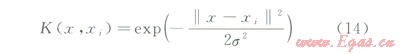 式中K(x,z:)為核函數,本文選用高斯徑向基核函數,其形式為: