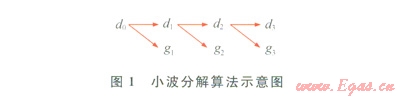 圖1中d0,為原始信號序列,d3為第3層低頻信號序列,g1、g2、g3分別為第1層高頻序列、第2層高頻序列、第3層高頻序列,圖1依據的公式為: