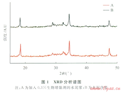 2.2 加入生物增黏劑后水泥石的XRD分析