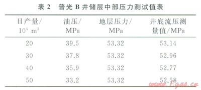 利用式(1)~(2)、(8)~(11)對普光B井的井筒壓力進行計算,同時也利用常用的干氣井井底流壓計算公式[11]進行計算,其計算結果如表3所示。