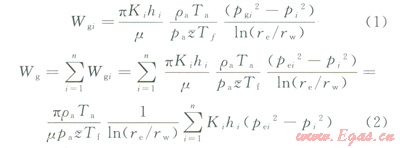 對于全部射開的巨厚氣藏,流體的滲流特征與普通氣藏的滲流并沒有特別大的差別,所以滲流模型可以用常規的氣井滲流模型。即