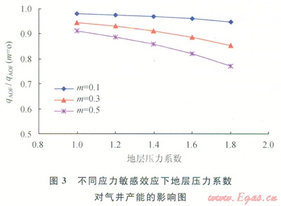 3.1 應力敏感指數對氣井無阻流量的影晌