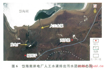 遠(yuǎn)砂壩位于河口壩外側(cè),與河口壩相接,是河口壩向湖的延伸,只是由于水體變深,水動(dòng)力變?nèi)酰练e物以粉砂和泥質(zhì)粉砂為主,顏色也偏暗。粉砂和泥主要是呈懸浮狀態(tài)由靠慣性向前流動(dòng)的河水搬運(yùn)、沉積的。在沉積過(guò)程中,沿岸流的作用可使混濁的河水向兩側(cè)擴(kuò)散。因此遠(yuǎn)砂壩的沉積范圍比河口壩的要大。在岱海南岸有一個(gè)發(fā)電廠,排出的污水沿人工渠流入湖中。人工渠寬約10m,水深約1m,流速較急,約0.7m/s,與辮狀河流速相近。污水在湖中的擴(kuò)散形式可以反映河水在湖泊中的擴(kuò)散形式(圖6)。