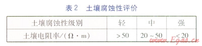 本次土壤腐蝕性檢測,利用ZC-8接地電阻測量儀測試土壤的電阻率。管道周圍土壤電阻率在20.0~75.2W·m范圍。按照CJJ 95—2013《城鎮燃氣埋地鋼質管道腐蝕控制技術規程》中土壤電阻率腐蝕性評價指標的劃分(見表2),埋地燃氣鋼管周圍土壤腐蝕性在輕、中級別。