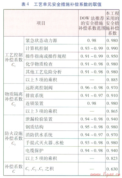 本工藝單元的安全措施補(bǔ)償系數(shù)的取值詳見(jiàn)表4。