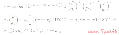 基于有限元分析結果,給出了穿越角度大于90°時跨斷層區X80鋼管設計應變的回歸公式。根據參數分析得到的各參數對設計應變的影響規律可以得到設計應變的回歸公式形式如下: