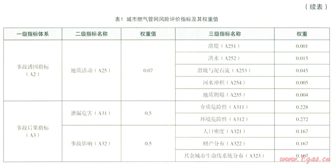 城市管網風險因素間權重的選擇,參考國內外經驗[6],[8],各指標權重分配見表1。