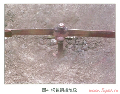 根據GB/T 50235—2010《工業金屬管道工程施工及驗收規范》中對防靜電和防雷電的要求,對于露空的閥門、閘井中的閥門應該進行接地處理。在接地時,為了有效地降低與土壤的接觸電阻和接地材料的自身腐蝕,往往會使用銅包鋼或者銅網等惰性材料接地方式,如圖4所示。