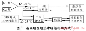② 利用G13、14井為附近新建建筑供熱,仍采用地?zé)崴菁?jí)利用方式(見(jiàn)圖3)。
