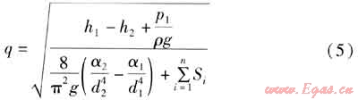 式中d1——斷面1處的管道內直徑,m