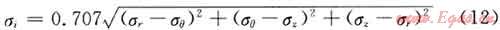 根據Von-Mises屈服強度準則,用三軸應力來校核管柱安全性,應力計算公式為: