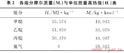 根據式(2)可以求得單位質量高熱值(Hm)為55.058MJ/kg。