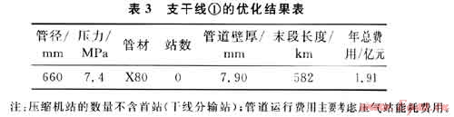 經過計算,得到支干線①的優化結果如表3所示。