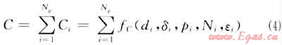 式中Ci為管網中第i條管道的運行費用,元。