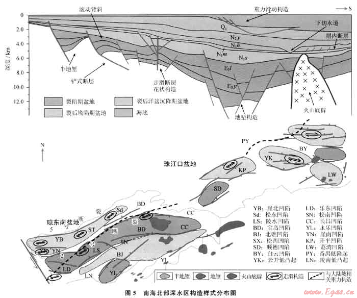 關鍵詞:瓊東南-珠江口盆地;深水區;構造樣式伸展構造;走滑構造;重力構造;分布規律;南海