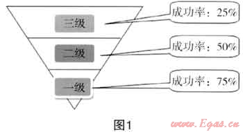 具體而言,創(chuàng)造機(jī)會(huì)、尋找客戶首先要對(duì)整個(gè)經(jīng)營區(qū)域內(nèi),特別是企業(yè)燃?xì)夤芫W(wǎng)已經(jīng)到達(dá)或者近期將要到達(dá)的區(qū)域內(nèi)的各類工業(yè)企業(yè)、事業(yè)單位、賓館、飯店、寫字樓等企事業(yè)單位的能源消耗情況進(jìn)行摸底調(diào)研,或通過各類政府部門,或通過各類行業(yè)協(xié)會(huì),或通過直接登門拜訪,了解這些企業(yè)使用的是哪些能源,不同能源每年的能耗量各是多少,是否有季節(jié)性變化,各類能源的使用成本等基本信息,特別需要關(guān)注的是工業(yè)企業(yè)的各類能源具體是如何使用的,即在生產(chǎn)的哪些環(huán)節(jié)需要使用到什么能源,這些能源消耗后起到的作用是什么,這對(duì)于燃?xì)馄髽I(yè)制定相應(yīng)的市場營銷戰(zhàn)略具有非常重要的指導(dǎo)意義。其次是對(duì)調(diào)研所得的各項(xiàng)數(shù)據(jù)進(jìn)行分析,找出各類大大小小的潛在客戶,利用市場營銷的“漏斗原理”將各類潛在客戶進(jìn)行分類,確定不同等級(jí)的目標(biāo)客戶,一般可分為3個(gè)等級(jí),如圖1所示: