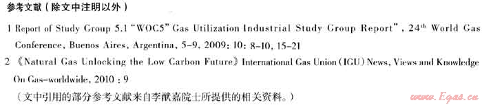 (5) 本文所引用的資料均是本世紀以來值得研究的數據,從中可看出世界各國對本世紀能源構成的共同發展方向。在化石燃料中,由于天然氣的碳/氫比較小,是唯一能滿足節能、減排要求的燃料,常稱為環境友好燃料。在世界各國的能源構成中,我國是所占比重最低的國家之一,改革開放以來的變化也很小。增加1000億m3的天然氣,相當于1.2億t的標準煤,按表2可算出燃料效率提高后的節能量和C02減排量。當今世界年消耗天然氣約2.48億m3,相當近29億t標煤,在世界能源、減排中有舉足輕重的作用,到2030年估計全球天然氣消費料將達4.5億m3-5億m3。國際研究表明,加上可再生能源,新能源和其它減排措施后,全球C02的濃度可能降低到1990年水平的要求。本世界以來天然氣已形成了較大的國際市場,發展天然氣已成為各國應對氣候變暖的首選方案。我國在國家“十二五”規劃綱要中已有反映。