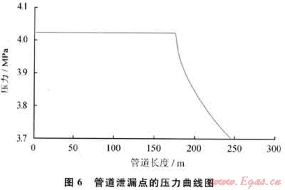 3) 輸氣管道發生泄漏時,泄漏點壓力下降較快,會導致泄漏點上下游壓力的下降,上游流量上升,下游流量下降。