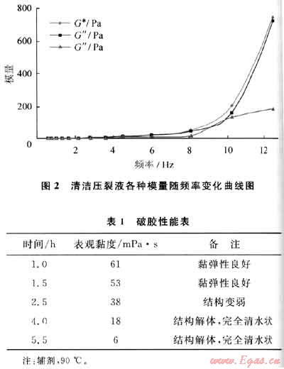 1) 室內實驗表明:清潔壓裂液彈性性能好、攜砂性能和破膠性能優良,具有低摩阻和低傷害、易返排的特點。
