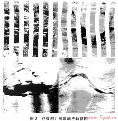 根據溶洞的分布特征及與孔、縫間的關系,可分為孔隙性溶洞和裂縫性溶洞??紫缎匀芏醇慈芏词侨芸妆贿M一步溶蝕擴大后形成(圖3-a),這些溶洞周圍常密集分布溶孔,孔、洞也常呈層狀分布,相互間連通性好;裂縫性溶洞即溶洞是構造縫及少量成巖壓溶縫被局部溶蝕擴大形成的,溶洞常沿裂縫呈串珠狀或長條狀分布,縫、洞連通性好(圖3-b、c、d)。以小型溶洞為主,占82%,中型溶洞占13%,大型溶洞占5%。在白云巖層段中、小型溶洞相對發育,而在石灰巖層段大型溶洞發育。在EMI測井剖面中,大型溶洞的高度可達0.5m。在鉆井中常出現鉆時降低、放空、井漏顯示,如某井放空0.3m,EMI測井反映溶洞特征明顯(圖3-c)。在不同的構造部位,溶}同的發育程度差異明顯,V3井區Zone1-Zone2的溶洞層段明顯比V1、V2井區發育,厚度為V1、V2井的1.5~2.0倍,表明從構造的西南段向東北段溶蝕作用有減弱的趨勢。同時,據巖石學特征、溶蝕孔洞內幾乎沒有充填以及溶孔、溶洞與裂縫的密切關系,認為溶蝕作用是在構造裂縫形成之后發生的。