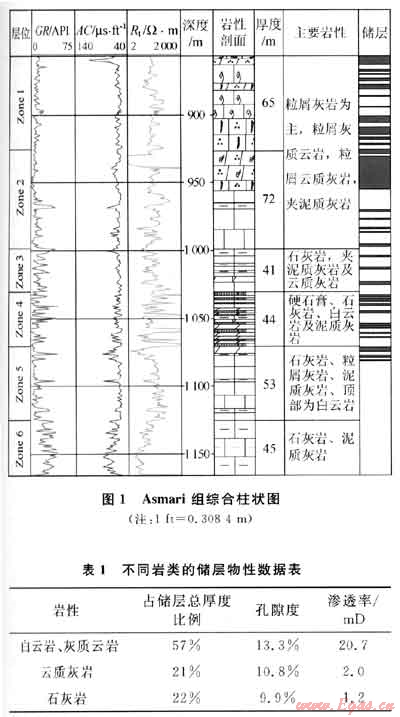 根據測井解釋(表1),白云巖類儲層所占比例高,孔隙度、滲透率高,物性好,是主要的儲集巖類,這與MIS構造Asmari組主要為石灰巖儲層的傳統認識有差別[1]。