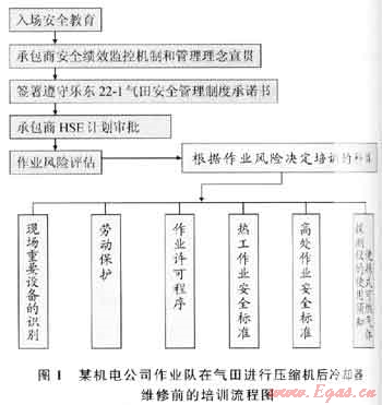 圖1是某機電公司作業隊2010年7月在氣田進行壓縮機后冷卻器維修前的培訓流程。