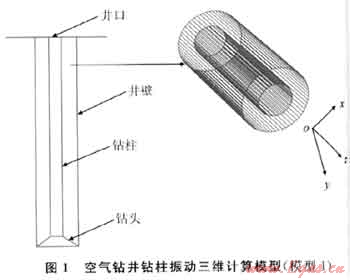 根據Wolf S.F.等人的研究成果[2~4],可以推斷鉆柱斷裂主要是由鉆柱振動引起的交變應力所造成的,屬于應力疲勞損壞??諝忏@井與常規鉆井液鉆井不同的地方主要在于所采用的鉆井液流體不同,因此對鉆柱振動特性有了較大的影響。針對空氣鉆井條件下的鉆柱振動問題,建立了有限元模型,重點考察了空氣鉆井中鉆柱長度、鉆井液阻尼等對鉆柱振動特性的影響,以及底部鉆具受到周期性擾動時,鉆柱產生的橫向位移響應情況。