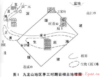 勘探實(shí)踐表明:川西九龍山地區(qū)下二疊統(tǒng)有利的儲(chǔ)集相帶為棲二段、茅三段灘相,這類灘相沉積時(shí)水體較淺,大多為潮間和潮下的高能環(huán)境,各類粒屑灰(云)巖較發(fā)育。由于這類粒屑灰(云)巖的結(jié)構(gòu)較粗、質(zhì)純、性脆,故在沉積、成巖過程中易被改造而產(chǎn)生多種空隙,包括一些原生孔隙、各種次生孔隙和構(gòu)造裂縫,從而改善碳酸鹽巖的儲(chǔ)滲性能,成為油氣富集的有利場(chǎng)所。