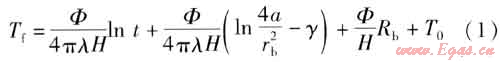 根據線熱源理論,埋管內流體的平均溫度計算式為: