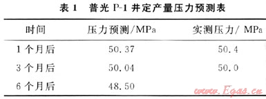 同時在資料解釋后按定產量的方式進行預測。保持產量在47.9×104m3/d不變的情況下,生產1個月、3個月、6個月后進行壓力預測,井底壓力分別下降至50.37MPa、50.04MPa、48.50MPa,與生產后實測壓力基本吻合,其預測結果見表1。