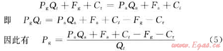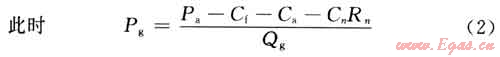 從另一方面看,該單位產(chǎn)品所用天然氣產(chǎn)生的使用經(jīng)濟(jì)價(jià)值應(yīng)為單位天然氣用于該用途的使用經(jīng)濟(jì)價(jià)值與生產(chǎn)該單位產(chǎn)品所消耗天然氣量的乘積(PgQg),它們的數(shù)值應(yīng)相等: