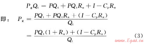 設(shè)Pg為天然氣在某一用途中的單位天然氣使用經(jīng)濟(jì)價(jià)值,Qt為該用途中1年消耗的天然氣量,I為該類產(chǎn)品生產(chǎn)企業(yè)1年利潤(rùn)總額,Rn為同行業(yè)中未使用天然氣企業(yè)的平均生產(chǎn)成本利潤(rùn)率,Cp為該企業(yè)1年的生產(chǎn)成本,P為該企業(yè)購入天然氣價(jià)格(不含稅)。