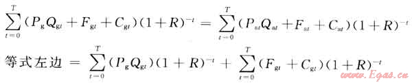 根據(jù)“替代價(jià)值法”的原理,在達(dá)到相同使用效果前提下,在天然氣使用裝置經(jīng)濟(jì)壽命期內(nèi)付出的累計(jì)投入現(xiàn)值應(yīng)等于使用天然氣等價(jià)替代物的裝置經(jīng)濟(jì)壽命期內(nèi)付出的累計(jì)投入現(xiàn)值,即: