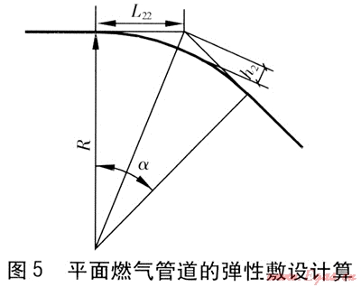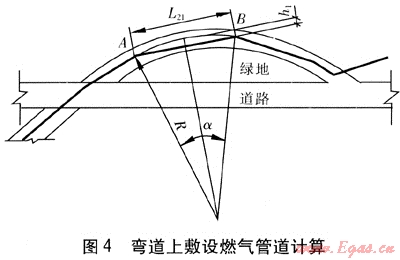 彎道上敷設(shè)燃?xì)夤艿烙?jì)算見圖4。