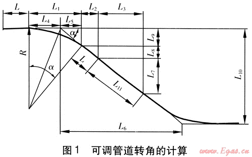 可調(diào)管道轉(zhuǎn)角的計(jì)算見圖1。