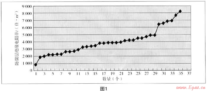35個(gè)測(cè)點(diǎn)的防腐層電阻率從826Ω·m2~8218Ω·m2,管道的外防腐層電阻璋弓啷分在3000Ω·m2~5000Ω·m2,平均值為3996Ω·m2,說(shuō)明管道防腐層等級(jí)基本上為“差”。