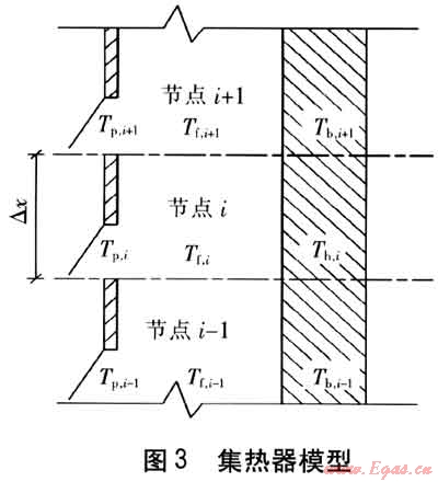 集熱器模型見圖3,基于有限差分的數值解法,將集熱器沿x方向分成n個節點。