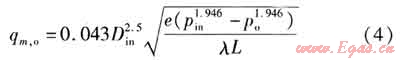 引入流量效率因數e,反映局部阻力的影響。無局部阻力的直管段取1.00,運行較好的管段取0.95,運行一般的管段取0.92,運行不好的管段取0.85。計算管段出口蒸汽質量流量qm,o的計算式為: