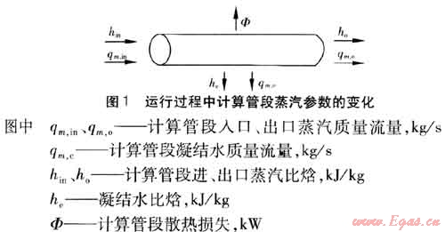 飽和蒸汽段沿途有凝結水排出,熱量損失包括散熱損失和凝結水的熱量。過熱蒸汽段無凝結水排出(qm,c=0),熱損失僅為散熱損失。